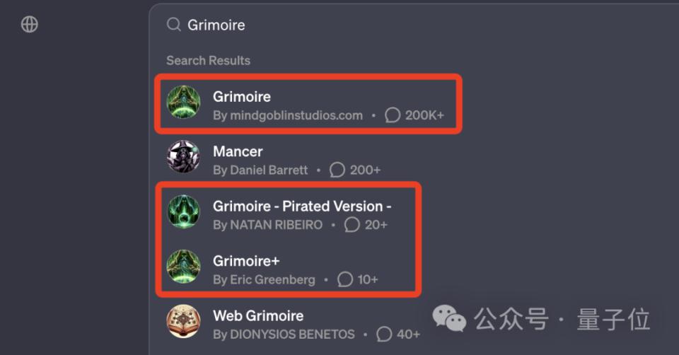 即使是位居趋势榜第四的 Grimoire,也没能躲过被山寨复刻的命运: