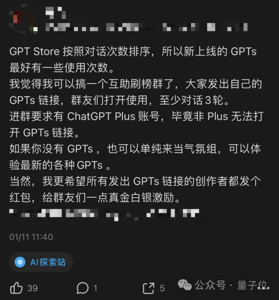 我觉得我可以搞一个互助刷榜群了,大家发出自己的 GPTs 链接,群友们打开使用,至少对话 3 轮。