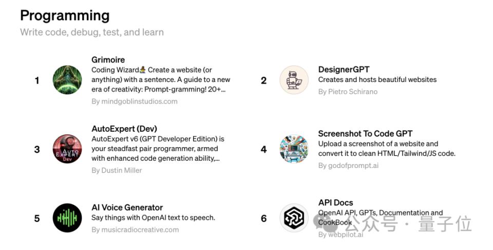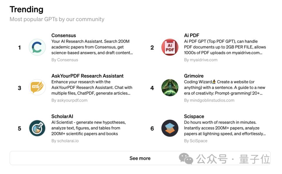 当然 GPT Store 中也有不少优质应用,官方榜单中有很多网友体验后表示 " 好用 "。