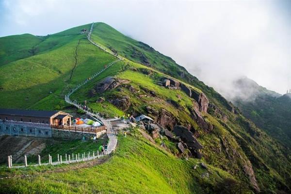 武功山有美丽的草甸。在这里你能够感受到和大自然无比的亲近,每到周末的时候,都有很多人来这里搭建帐篷野营。