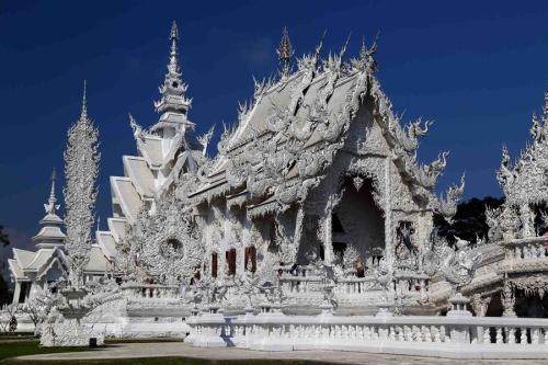 清莱白庙在国内应该已经是个“网红景点”了,虽然大家已经很熟悉了,但是白庙,依旧值得千千万万次。白庙又称灵光寺,位于泰国北部清莱西南部15公里处,建于1998年,历经13年至今尚未完工,由泰国著名建筑师(原为画家)Chalermchai Kositpipat设计建造。寺庙大多金光闪闪、气势恢宏,而白庙却通体雪白,在清莱的蓝天白云间,它是一个梦幻天堂。它被堪称泰国最美丽的寺庙,每年到这里的游客络绎不绝。