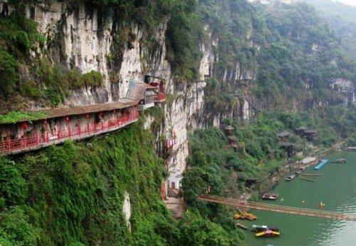 巫峡,位于重庆巫山县和湖北巴东县两县境内,西起巫山县城东面的大宁河口,东至巴东县官渡口,绵延四十五公里,包括金蓝银甲峡和铁棺峡,峡谷特别幽深曲折,是长江横切巫山主脉背斜而形成的。巫峡又名大峡,以幽深秀丽著称。整个峡区奇峰突兀,怪石嶙峋,峭壁屏列,绵延不断,是三峡中最可观的一段,宛如一条迂回曲折的画廊,充满诗情书意,可以说处处有景,景景相连。