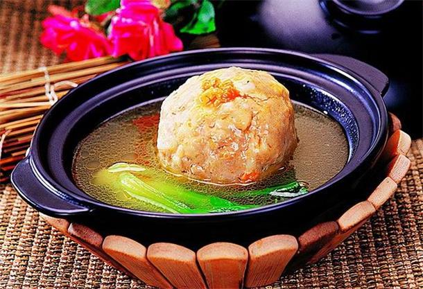 清炖蟹粉狮子头是著名的淮扬菜。只用猪肉加上蟹肉,还有虾子,蟹黄一起制作,成狮子头,在砂锅里焖熟吃起来味道非常鲜美。