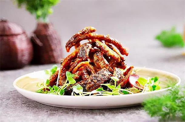 这道菜是无锡的传统名菜,用新鲜的鳝鱼切成丝,经过油炸制而成,口感酥脆,味道香浓,营养价值高。