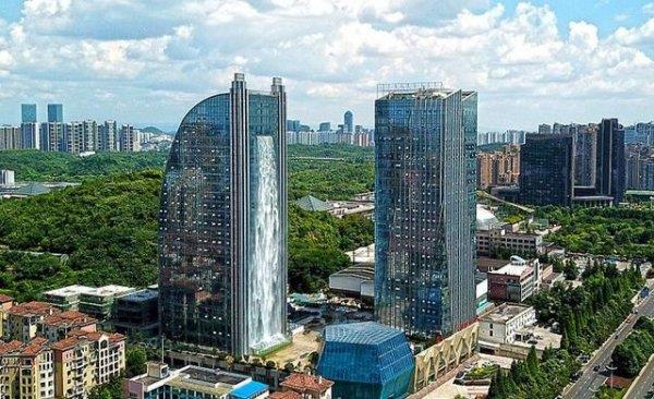 世界上最高的人造瀑布位于贵州省贵阳市观山湖区的烈变广场,可以说是一个城市景观。它的设计是让水从高楼上倾泻而下,形成瀑布的景观,它一共运用了至少四台高压泵动力系统,上千吨的水就这样被循环的抽到顶层在向下倾泻,才能形成如此壮观的场面。当瀑布一泻而下之时,那个场面确实是十分壮观,十分震撼!而建设这座建筑的过程并不简单,据说光是瀑布的主体部分就用了至少2年的时间才建成,而且平时开启的费用也非常的昂贵,如果是一直开着,那么每小时就需要消耗1千块。