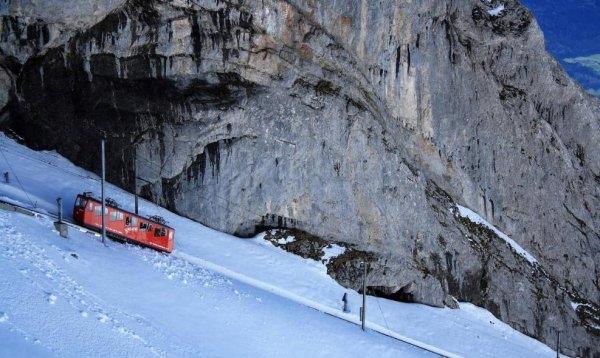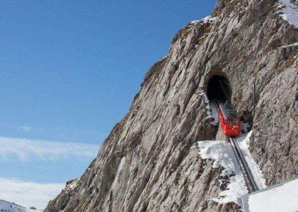 在坡度近50度的几千米高的山地上行驶,连车厢内的座位都是倾斜的,当年工程师提出建造计划时,大家都以为他疯了!瑞士皮拉图斯山铁路自1889年投入使用,已经运行了120多年,并且在120多年里没有出现过任何事故,虽然看似很危险,但是事实上非常安全。这趟火车可以同时搭载40名旅客,由于天气原因,只在每年5月-11月运行。