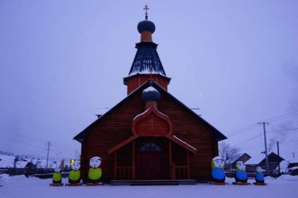 这里地处中俄交界,不远处就是俄罗斯,因此北红村极具俄罗斯风情特色。村子里唯一“豪华”的建筑,就是新建的小教堂,门口处那几个可爱的套娃标志,是村民和孩子们最喜欢的地方。