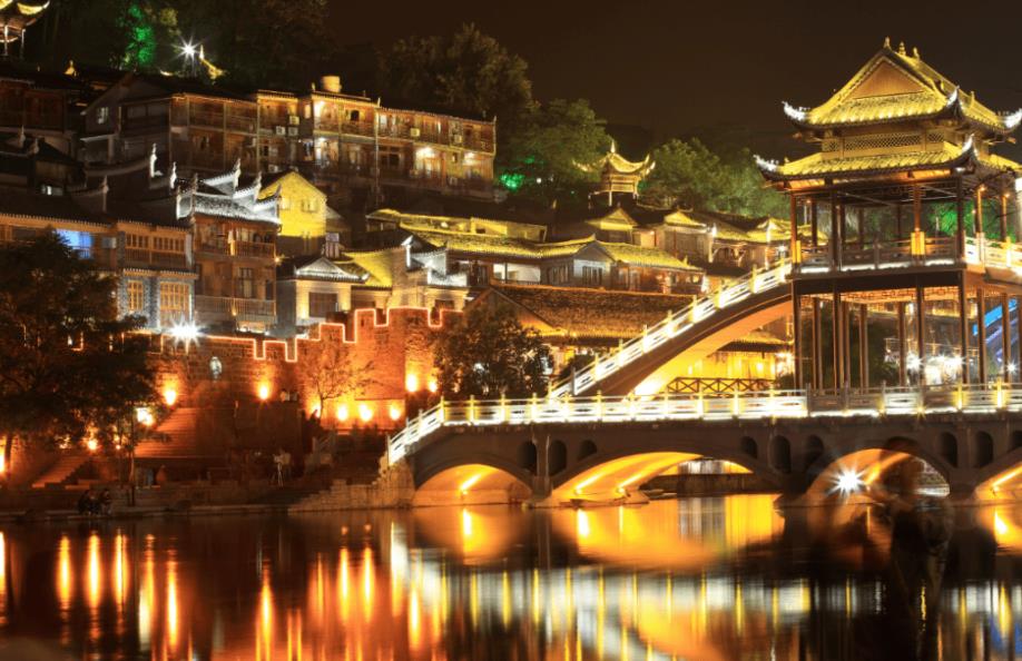 凤凰古城的出名是缘于沈从文笔下的《边城》,无论清晨还是黄昏,它烟雨迷蒙的风景,似乎总能把你带到浪漫之中。