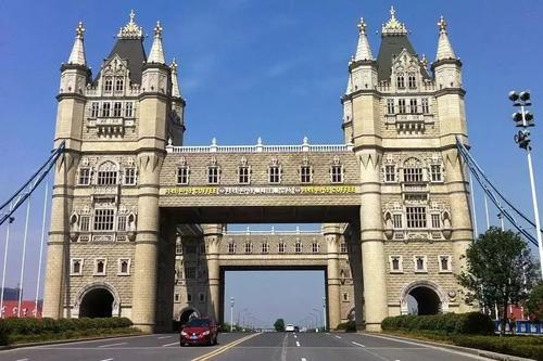 苏州相城区的塔桥外形与伦敦塔桥相同,与伦敦塔桥不同的是:伦敦塔桥只有2座塔楼,而苏州“塔桥”有四座,更显雄伟。