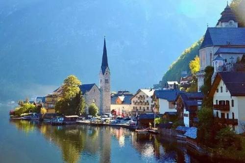 宛如童话世界的奥地利小镇哈尔施塔特(Hallstatt)以具有中国式屋顶的天主教教堂和细尖钟塔的清教徒教堂为中心,紧贴着险峻的山坡和湖泊之间建造,被联合国教科文组织列为世界文化遗产,也被誉为“世界最美丽的湖畔城小镇”。