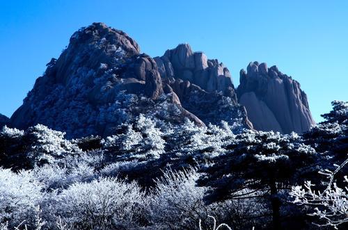 黄山有72峰,主峰莲花峰海拔1864米,与光明顶、天都峰并称三大黄山主峰。黄山为道教圣地,遗址遗迹众多。秦代时黄山因地处黔县东北被称为黔山,古代别名岗山。唐天宝六载(747),唐玄宗根据轩辕黄帝在这里采药炼丹得道升天的传说,改其名为黄山。