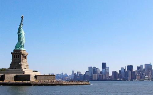 举世闻名的自由女神像,一座巨大的雕像,高高地耸立在美国纽约港口的自由岛上,高46米,基座93米,重达200多吨,头戴光芒四射的冠冕,脚踩束缚自由的锁链,左手捧着《独立宣言》,右手则高举象征着自由的长达12米的火炬。这座女神像不仅仅只是纽约的地标性建筑,对于美国人来说,更是美国人民从英国手中争取独立自由的象征性雕像。她代表了美国的历史、精神和特点,也道出了美国人美好的、向上的理想与愿望。