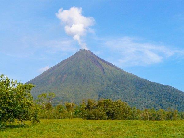 阿雷纳火山是哥斯达黎加最著名、最活跃的火山,也是世界上最活跃的火山之一。火山位于首都圣何塞西北大约147公里处,海拔1633米。阿雷纳火山平均每5—10分钟喷发一次,喷发期间,会在上空造成很大的火山灰雾和巨大的轰鸣声,在几十公里外都能见到。到了晚上,阿雷纳火山的景观更加壮观,岩浆卷着被高温熔化的山石向坡下翻滚,形成了非常诡异却又无比灿烂的“焰火”,通常至少延绵5公里远,为中美洲著名的奇观之一。火山附近有着数条热气腾腾的温泉河,每天都吸引着大量游客。