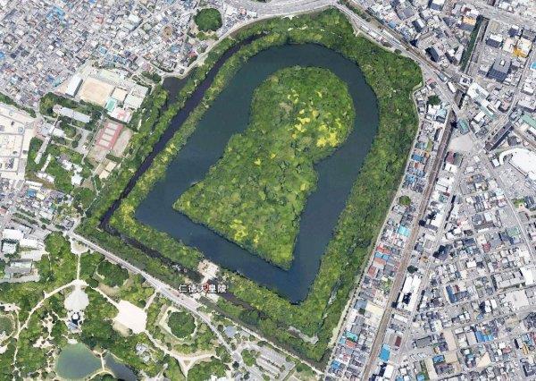 仁德天皇陵,全称为“百舌鸟耳原中陵”,位于今天日本堺市大仙町。虽然其名字是叫“仁德天皇陵”,但是陵墓里面的墓主人的实际身份不明,日本只是在传统上将其比附为仁德天皇而已。