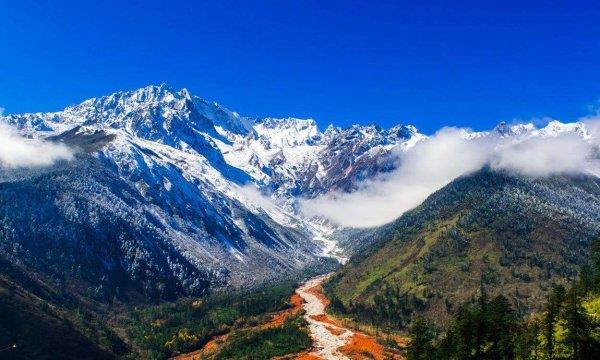 海螺沟则位于贡嘎山风景区内。每日清晨,太阳初起时,连绵雪峰霎时间披上一层灿烂夺目的金光,这就是海螺沟最著名的一景——日照金山。海螺沟沟内高差达6000米左右,因此,2500多种从亚热带至寒带的野生植物都集中在一个风景区内。
