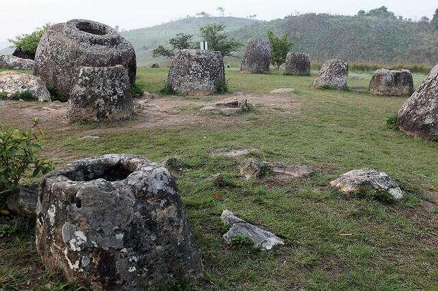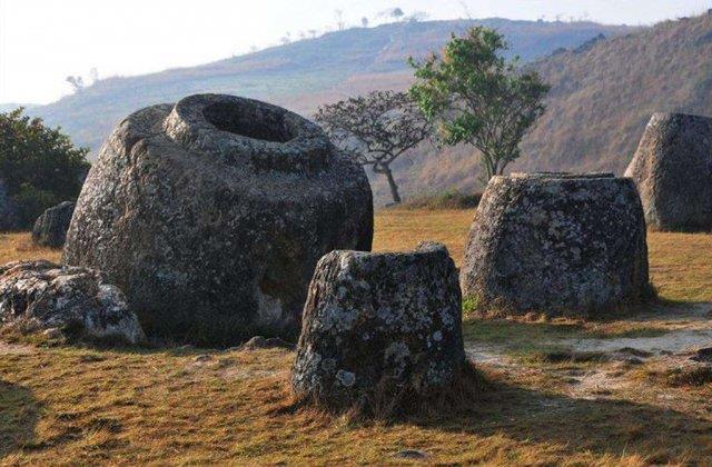 老挝的石缸阵,又称为千缸阵。与英国的巨石阵、智利的巨石人像和南美洲的石人圈一起被称为“世界四大石器之谜”,而老挝石缸阵比之其它三个石器之谜更为扑朔迷离。这里共有3000余个石缸,其中有的高3米,重6吨。
