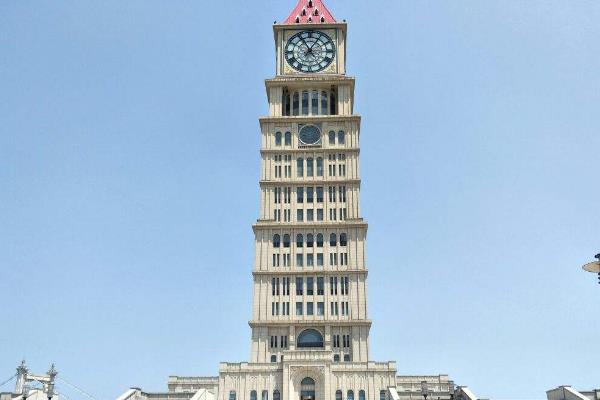 和谐钟塔一共有9层,内部设有很多设施,比如陈列区、观光台和旋转餐厅等。这座钟塔主要是以英伦风格为主,由我国自主建造,不过上面的这面机械钟则是产自英国,当时经历了20多天的时间才通过海运抵达了江西的赣州,成功的安装在了钟塔上。