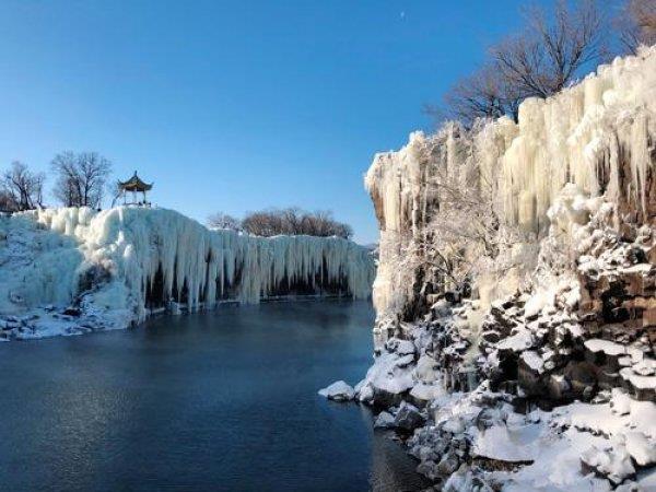 在雨季或汛期,瀑布呈现两股或数股迭落,从三面倾泄而下总幅宽达200余米,飞流直下,声震如雷。在冬季枯水期,瀑布消失,“飞落千堆雪”,冰柱挂满峭壁,蔚为壮观。还可发现许多被常年流水冲击的熔岩块因磨蚀而形成的大小深浅不等的溶洞,这些溶洞光滑圆润,十分别致。