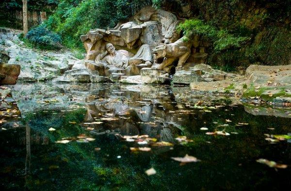 虎跑梦泉位于西湖之南的大慈山定慧禅寺内,相传这里是唐代高僧性空居住的地方。有一年因为缺水,他正准备迁走的时候,梦中得到神的只是,南岳衡山有童子泉,会有两只老虎过来做穴,然后石壁中基因涌出了泉水。