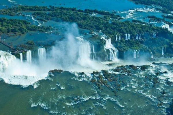 伊瓜苏瀑布,世界上最宽的瀑布,位于阿根廷与巴西边界上伊瓜苏河与奇怪那河合流点上游23千米处,瀑布的形状如马蹄形,瀑布高82米,宽4000米(这个宽度是尼亚加拉瀑布的4倍,比维多利亚瀑布还宽的多),平均落差75米。1984年,被联合国教科文组织列为世界自然遗产。 虽然巴西和阿根廷瓜分了伊瓜苏瀑布,但实际上瀑布的80%在阿根廷境内,剩下的20%在巴西境内,因为整个瀑布太宽,如此巨大、雄伟瀑布群要窥其全貌绝不容易。