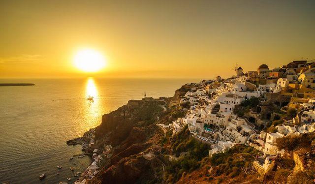 位于榜首的是世界闻名的希腊圣托里尼。圣托里尼岛是爱琴海中最璀璨的一颗钻石,一天中最好的游览时光就是在日落之时,天空变成了壮丽的金黄色,整座岛屿上的蓝白色房屋也都被日落的光辉映照成了金黄色,在落日余晖下还有无数亲吻的情侣,此情此景好不震撼。圣托里尼岛上的伊亚小镇是观看世界上最美日落的绝佳之处,来自全球的情侣争相在这里举办浪漫的日落婚礼,在这里游客可以在日落的光辉中捕捉白色小教堂配上蓝天碧海的唯美画面。