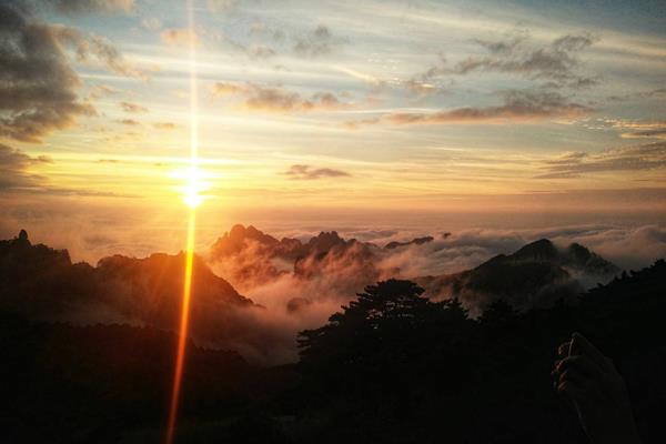 徐霞客曾经说过:“五岳归来不看山,黄山归来不看岳”。黄山的日落是古代的文人侠客追寻的世间奇景,它不似唯美的海边日落,壮丽、雄伟、气拔山河才是真正适合黄山日落的词语。耀眼的太阳将云雾都染成了金色,然后在群峰中慢慢落下,消失在群山的怀抱中,实在是美不胜收。