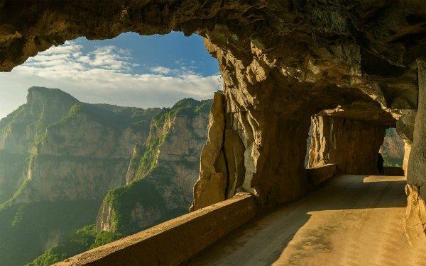 在巍巍太行山深处,坐落着一个“世界上最危险的村庄”,它叫郭亮村;而通往郭亮村的路,便是名震自驾圈的郭亮挂壁公路。[bai]这条路是郭亮村民耗时5年,用双手、铁锤在山岩中开凿的穿山隧道公路,被誉为“世界第九大奇迹的公路”。从远处看,这条路就像大气磅礴的山水国画, 而从隧道洞里的侧窗向外看, 又像是在画廊里欣赏一幅幅风景画,美不胜收。