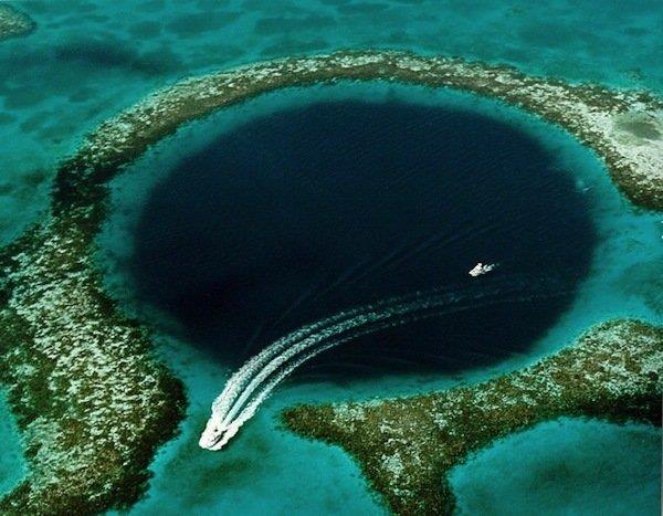 壮丽的大蓝湖位于伯利兹外海约43英里处,离灯塔暗礁的中心距离很近。完 美的圆弧地下水洞深约407英尺(124米),宽达984英尺(300米)。四周由蓝绿色水域围绕,像是一个黑眼睛一般突出。 这个地下水洞是潜水者的向往 之地。然而由于洞壁倾斜,潜水者必须技术高超才可以在水洞里徜徉。奇怪的是,尽管偶尔会有鲨鱼出没,然而大蓝洞里的海洋生物并不多见。