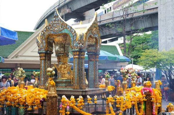 四面佛有四个面可以参拜,每一个面代表了人世间不同的祈求,因为太过灵验,所以每天都有人前去参拜,院内除了进去参拜的人,还有还愿的人,还愿有特定的仪式,使寺庙有种很独特的氛围,附近还有泰国十大酒店之一的曼谷文华东方酒店,居住非常方便。