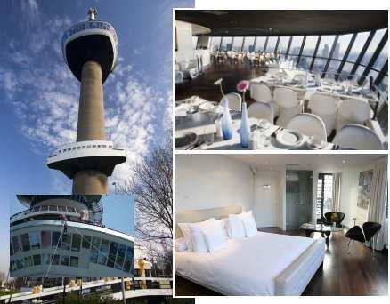 欧洲之桅,1958年为荷兰国际园艺博览会而建,从此揭开荷兰花卉的对外贸易之盛世,原本作为瞭望塔协调交通之用,后期被认定为历史遗迹纪念碑。底座使用一整块重达1900吨的混泥土方块,地震倾斜后自然归位而传播海外,如今已成为鹿特丹最值得登顶的景观式建筑,塔顶餐厅需提前半个月预约,人均消费约300欧元!