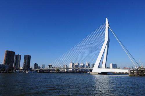 伊拉斯谟桥位于鹿特丹,是荷兰第一座斜拉开启式桥梁,全长802米,斜拉部分长139米,因强风中会左右摇摆酷似天鹅飞翔而别称天鹅桥。天鹅桥总耗资约1.65亿欧元,由荷兰贝娅特丽克丝女王私人出资修建,此后曾出现在成龙电影《我是谁》中,从此被各大好莱坞剧组相中,成为好莱坞电影网红拍摄地之一。