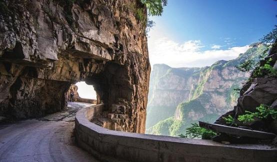 挂壁公路是南太行特有的景观,南太行里的大峡谷最深处动辄几十米到上百米,绝壁林立,在这个区域根本无法修建盘山公路。太行山人贴壁而凿,将公路修 成了或明或暗的隧洞。远看如大气磅礴的国画山川长卷;从地道洞内侧窗向外看,又像是在画廊里观赏一幅幅景致画,琳琅满目!天下一共七条挂壁公路,此中工程量最大,用时最长的便是这条。传说神仙曾在此冶锡炼丹,这里阡陌纵横,梯田高叠,溪流潺潺,古桥飞架,景致绝佳,蔚为壮观!