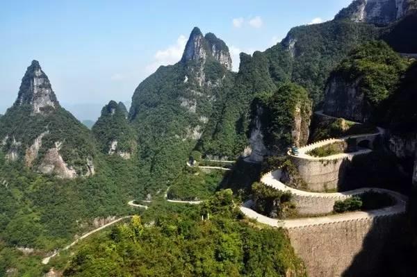 天门山九十九道弯,弯弯都是鬼门关,张家界天门山盘山公路有"通天大道"之称,公路全长10.77公里,海拔从200米急剧提升到1300米,大道两侧绝壁千仞,空谷幽深,共计99个弯,180度急弯此消彼长,弯弯紧连,层层迭起,被誉为“天下第一公路奇观”。