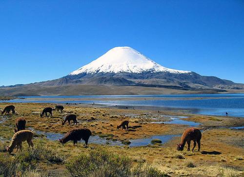 帕里纳科塔山是一座休眠了的火山。它有20,827英尺高。它位于玻利维亚和智利交界处,被称为休眠火山。这是一座可攀登的山,春加拉湖就在山脚下。
