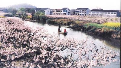 上海南汇桃花村园内有近500亩的桃园、水泊和各类珍贵树种,是历届上海桃花节的主景点,游人可泛舟而行,在蓝天碧水的映衬下,百里桃花争奇斗艳、云蒸霞蔚:也可舍舟登岸,走进桃花源处,徜徉于花海之中,游人自己也成了一道人面桃花相映红的诗意风景。整个桃花村是“以诗营园,以画勾园,以情蕴园:以绿营景,以画造景,以景观诗,以景载文。”成为现实生活中的都市桃花源。