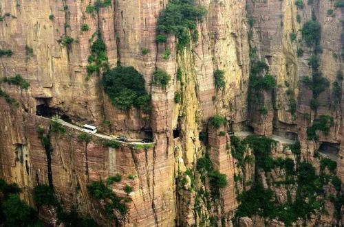 挂壁公路是在悬崖峭壁上开凿而出的,我国一共有六条挂壁公路,主要分布在太行山及晋东南,有锡崖沟(陵川县)、郭亮(辉县)、陈家园(陵川县)、回龙(陵川县)、昆山、井底(平顺县)。其中郭亮被称为“第九大奇迹”、“世界最险要十条公路之一”、“世界十八条最奇特公路之一”。