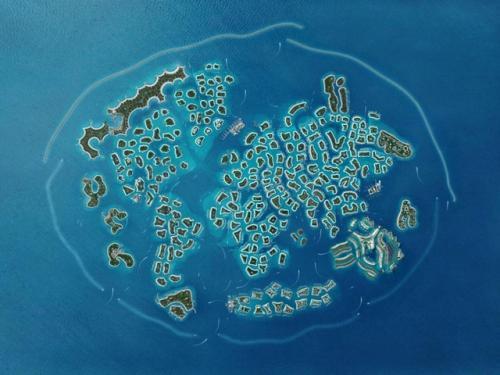波斯湾的世界岛屿是迪拜众多人造岛屿中的另一个。这个群岛是由小岛组成的,这些小岛按照世界地图的粗略形状建造,位于离海岸4.0公里的地方,相距大约100米。它们是由从迪拜浅水里挖出来的沙子组成的。