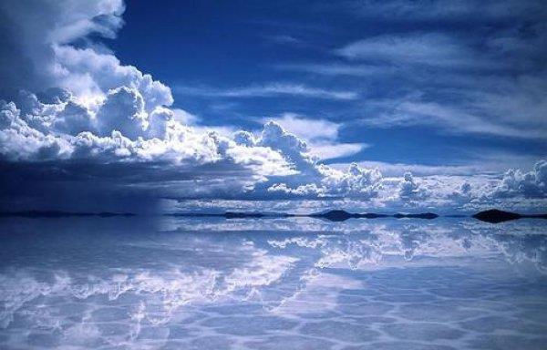 世界上最大的镜子 在南美洲的玻利维亚,有一个面积巨大的湖泊,当你从太空看它的时候,这里明光闪闪,强烈地反射着太阳的光芒,倘若你走进这里,你就会发现眼前亮晶晶闪动的既不是水,也不是冰,而是盐。这就是乌尤尼盐湖,位于玻利维亚波托西省西部高原内,海拔3,656米(11,995英尺),长150公里,宽130公里,面积9,065平方公里,为世界最大的盐层覆盖的荒原,有“天空之镜”的美称。乌尤尼盐湖边缘有盐场,主要盐场间有公路相通。这里雨量稀少,气候干燥,仅在12月至次年1月积水时,经由利佩斯河泄水。是由古老的明钦湖干涸而成。与北面的科伊帕萨盐沼(Coipasa Salt Flat)隔着一连串的小山川相望。