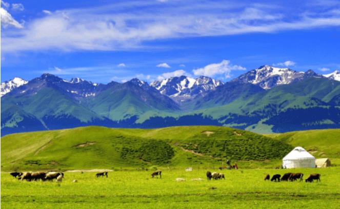新疆天山牧场是中国最大的山地牧场,天山草原有着面积广大,水源充足,气候宜人等特点,有着优质的牧草品种,养殖的牲畜,种类很多,品种优良。