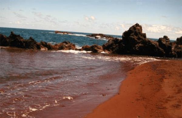 哈纳红山海滩的位置在夏威夷毛伊岛,这个海滩最大的特点就是沙滩的颜色是红色的。具体原因是因为海砂当中的铁元素含量很高。