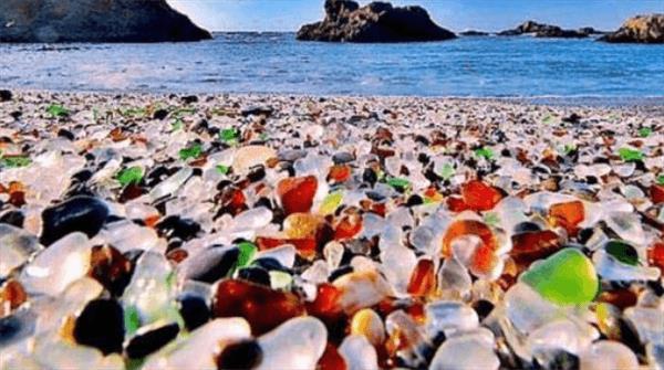 玻璃海滩真的是让你有种想象不到的美。大自然的神奇力量造就了这里变成了天然的小圆石子和沙子让这种古老的侵蚀变成了像碎玻璃一样的五彩斑斓石子的颜色各有不同,就像五颜六色的玻璃。