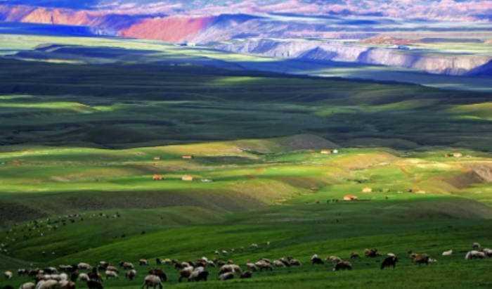 伊犁的呼伦贝尔牧场有着美丽的自然风光,水草丰美,而且有着便利的交通,这里的草原一望无际,就像一幅巨大的绿色水墨画一样。