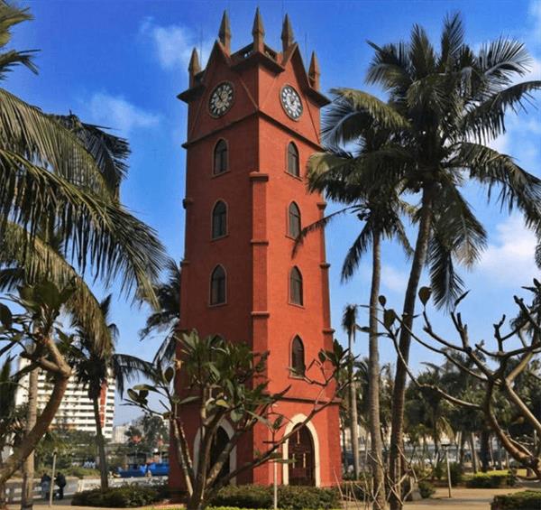 海口钟楼也是海口的重要标志性建筑,钟楼面向入海口。4面是直径两米的钟面,每隔30分钟就会报时。