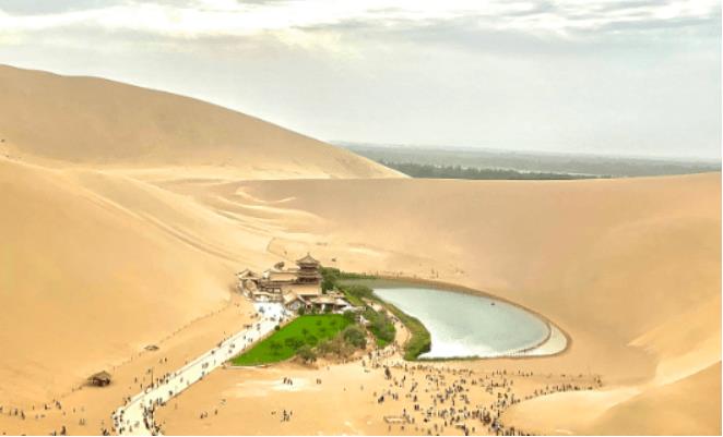 鸣沙山月牙泉位于甘肃省酒泉市是国家5a级风景区,也是一个值得去的旅游景点,曾经被评为中国最美五大沙漠之一。