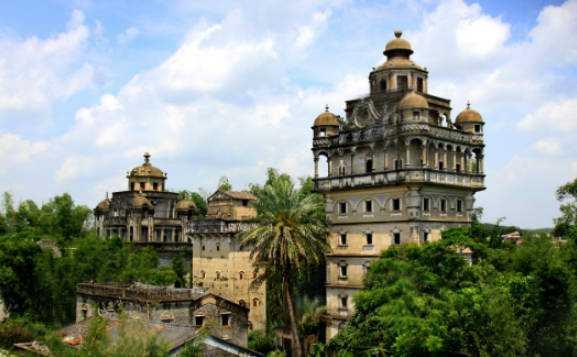 广东的开平碉楼位置在江门市,是世界遗产,也是中国乡土建筑的特殊类型。曾经热门电影让子弹飞的主要取景地就是在这里。