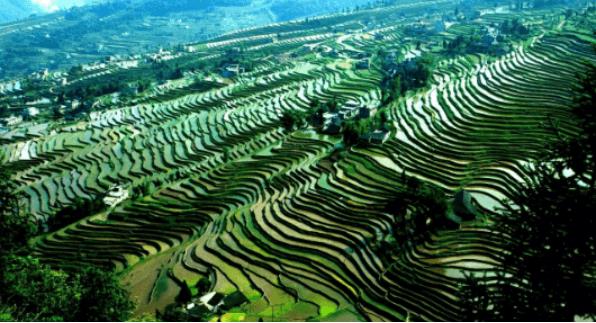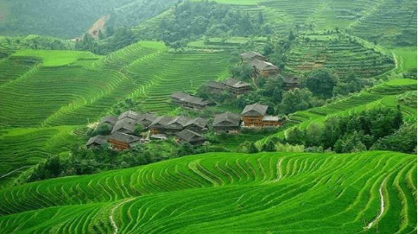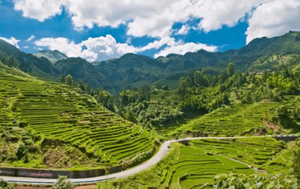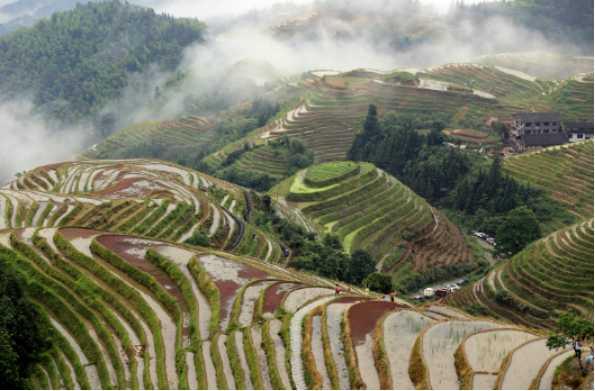 广西龙脊梯田一直在广西省桂林市龙胜各族自治县,这座梯田从长宋时期就已经开始大规模开发,在明清时期达到了现有的规模是罕见的大规模梯田。
