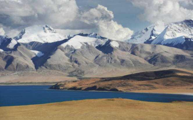 玛旁雍措的位置在西藏阿里地区,周围有着美丽的自然风光,来自于世界各地的佛教信徒都把这里看作是圣地。