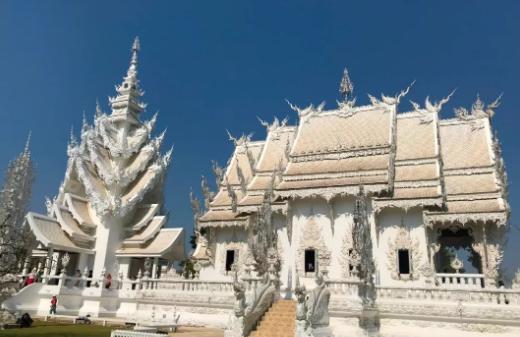 泰国清莱灵光寺也叫做白龙寺,属于现代建筑,建成于1998年这栋建筑充满了现代风格里面装饰着镜子碎片,现在也是泰国有名的旅游景点。