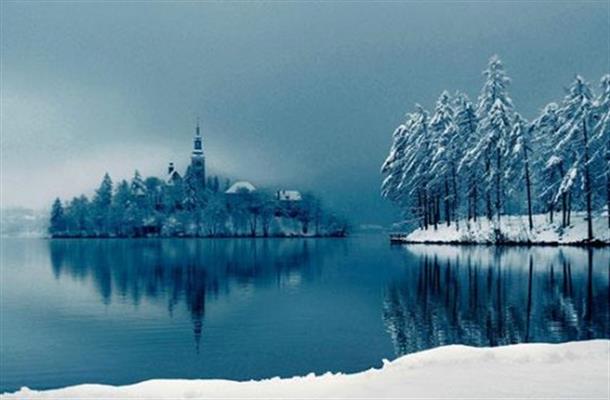 斯洛维尼亚布莱德是一个非常美的地方,位置在湖的正中央,周围都是湖水。不管是冬天还是夏天,都有着不同的美景,尤其是到了冬季,五面结冰能够在湖面上溜冰。