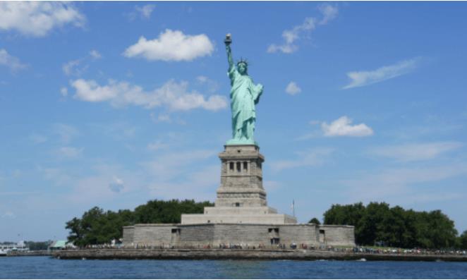 自由女神像是美国著名的旅游景点,也是美国独立100周年的象征,承载了一段悠久的历史岁月,现在已经被列入世界文化遗产。